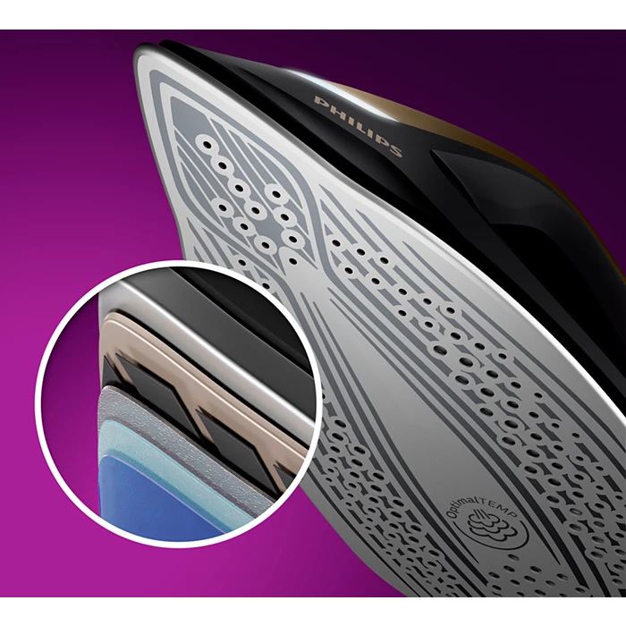 تکنولوژی منحصر بفرد : فناوری OptimalTEMP: فناوری ترکیب مناسب دما و بخار بدون نیاز به تنظیم دما، هیچ پارچه قابل اتو شدنی را نخواهد سوزاند