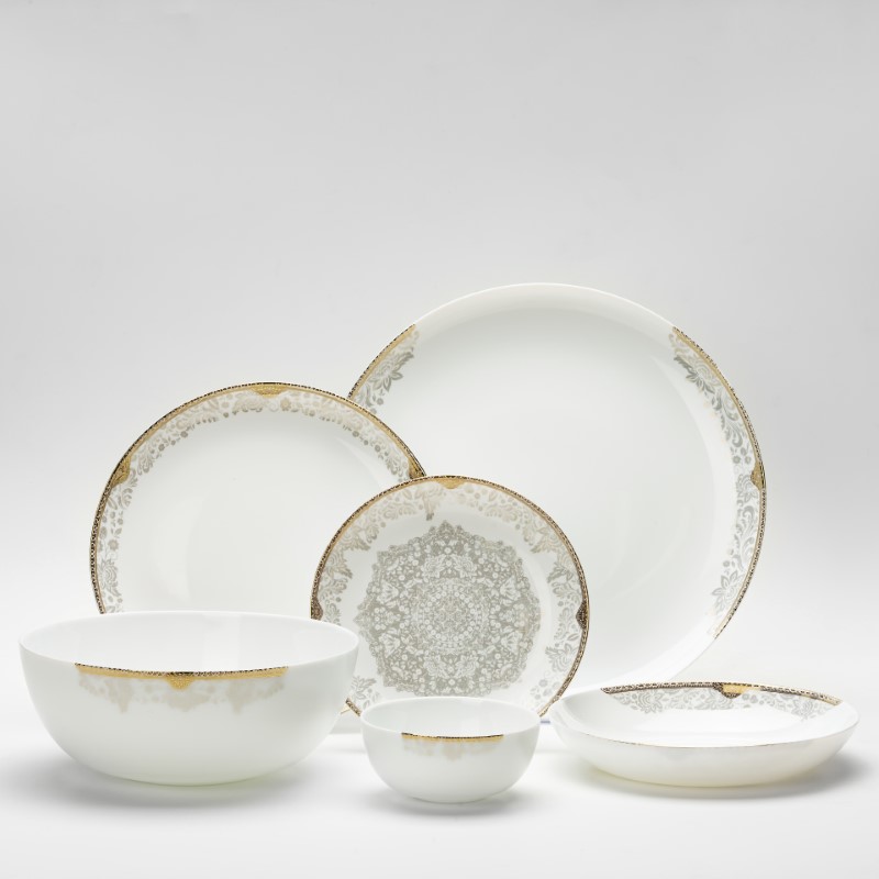 6 عدد کاسه ماست خوری, 6 عددخورشت خوری, 6عدد پیش دستی, 6عددپلو خوری, دیس گرد, کاسه سالاد خوری