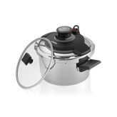 به همراه این زودپز، یک درب شیشهای اضافه نیز ارائه میشود تا بتوانید در مواقعی که به پخت با فشار نیازی ندارید، از قابلمه بهعنوان یک دیگ معمولی استفاده کرده و مستقیم غذا را مشاهده کنید. این قابلیت باعث چندکاره شدن زودپز و افزایش بهرهوری آن میشود.